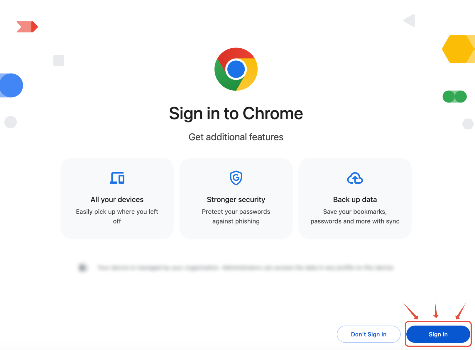 5. On the next prompt, you must click Yes, I’m in for the correct configurations and extensions to be installed in the Chrome profile.